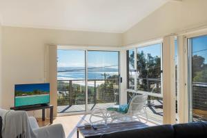 Featuring a private entrance, this holiday home also comprises 2 separate bedrooms, 2 bathrooms with a shower, a kitchen and a dining area. Guests will find a stovetop, a refrigerator, kitchenware and an oven in the kitchen. The holiday home also provides guests with a barbecue. Boasting a balcony with sea views, this holiday home also provides a washing machine and a flat-screen TV. The unit offers 3 beds.