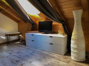 Rooms: 1This chalet's standout feature is the fireplace. Guests will find a stovetop, a refrigerator, a dishwasher and kitchenware in the kitchen. The chalet also features a barbecue. The spacious chalet offers a private entrance, a tea and coffee maker, a seating area, a flat-screen TV with cable channels, as well as garden views. The unit is furnished with 2 beds.