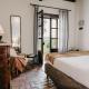 Todas las habitaciones se encuentran en la planta baja, tienen entrada privada y dan al jardín del establecimiento, equipado con sillas y tumbonas.