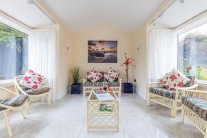This spacious holiday home comes with 4 living rooms, 5 separate bedrooms and 3 bathrooms with a walk-in shower and free toiletries. Guests can make meals in the kitchen that features a stovetop, a refrigerator, a dishwasher and kitchenware. Boasting a terrace with garden views, this holiday home also features a washing machine and a flat-screen TV with cable channels. The unit has 5 beds.