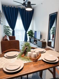 Apartament SUWAN Guesthouse A07 - 2BR Apartment with Free Wifi Near Kajang 2 z 2 sypialniami oferuje salon z TV, kuchnię i łazienkę.