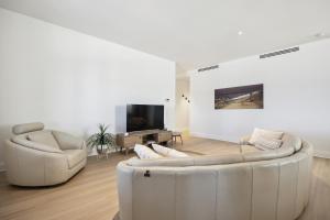 In the fully equipped kitchen, guests will find a stovetop, a refrigerator, a dishwasher and kitchenware. The spacious air-conditioned apartment features a flat-screen TV, a washing machine, a seating area, a dining area as well as sea views. The unit has 3 beds.