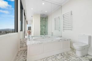 The hot tub is the standout feature of this apartment. This spacious apartment comes with 1 living room, 2 separate bedrooms and 2 bathrooms with a bath and free toiletries. Meals can be prepared in the kitchen, which features a stovetop, a refrigerator, a dishwasher and kitchenware. The air-conditioned apartment features a TV with streaming services, a washing machine, a seating area, a dining area as well as city views. The unit has 3 beds.