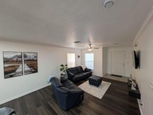 Featuring a private entrance, this air-conditioned holiday home consists of a kitchen, 3 bedrooms and 2 bathrooms with a shower and a hairdryer. The fully equipped kitchen features a stovetop, a refrigerator, kitchenware and an oven. Boasting a terrace with garden views, this holiday home also provides a coffee machine and a flat-screen TV. The unit offers 4 beds.