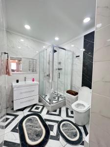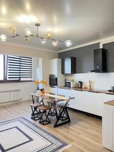 В этих апартаментах есть спальня (1), кухня с холодильником и посудомоечной машиной, гостиная зона, а также несколько ванных комнат (2) с душем. Гости Sweet Home Almaty могут смотреть телевизор с плоским экраном. Полотенца и постельное белье включены в стоимость проживания в Sweet Home Almaty.
