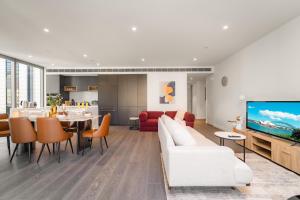Este apartamento climatizado en Sydney CBD modern apt with pool gym park 6ppl consta de 3 dormitorios, sala de estar, 2 baños con ducha y artículos de aseo, y cocina equipada con nevera y hervidor. El apartamento Sydney CBD modern apt with pool gym park 6ppl dispone de toallas y ropa de cama.