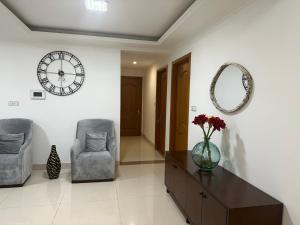 This spacious apartment is comprised of 2 living rooms, 4 separate bedrooms and 3 bathrooms with a bath and a shower. In the well-equipped kitchen, guests will find a stovetop, a refrigerator, kitchenware and an oven. The air-conditioned apartment offers a flat-screen TV with streaming services, soundproof walls, a tea and coffee maker, executive lounge access as well as city views. The unit offers 4 beds.