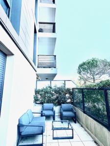 T2 apartment with terrace in Fréjus si trova a Fréjus a 1,5 km da Spiaggia di Port-Fréjus, 3,3 km da Stazione Ferroviaria di Saint-Raphaël Valescure e 34 km da Chateau de Grimaud. T2 apartment with terrace in Fréjus vanta una terrazza, la vista sulla città e la connessione WiFi gratuita nell'intero edificio.