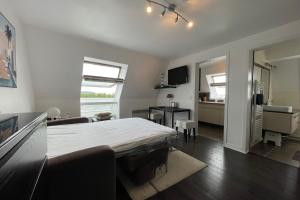 Rooms: 1The studio provides a coffee machine, a seating area, as well as a private bathroom featuring a bath or a shower and a hairdryer. The kitchen is equipped with a refrigerator, kitchenware and a microwave. The studio offers a dining area, a sofa, heating, a TV, as well as city views. The unit provides 1 bed.