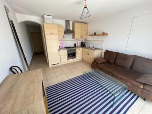 Klimatizovaný apartmán T2 domino zahrnuje 1 ložnici, satelitní TV s plochou obrazovkou a kuchyň s lednicí a troubou.