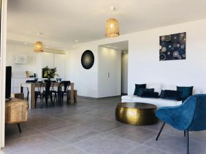 The spacious apartment is fitted with 2 bedrooms, 1 bathroom, bed linen, towels, a flat-screen TV, a fully equipped kitchen, and a terrace with sea views. The air-conditioned unit at T3 FRONT de mer dernier étage vue mer Petit havre de paix pour vos vacances Emplacement unique vue mer panoramique à 180 degrés pour ce T3 en face de la plage front de mer vue sur les iles 5 et dernier étage avec ascenseur features a shower and a dressing room. T3 FRONT de mer dernier étage vue mer Petit havre de paix pour vos vacances Emplacement unique vue mer panoramique à 180 degrés pour ce T3 en face de la plage front de mer vue sur les iles 5 et dernier étage avec ascenseur includes an outdoor dining area.