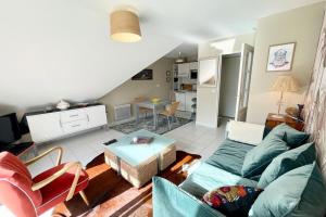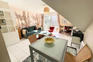 At T2 Top Cosy Balcon 150m des plages, the 1-bedroom apartment includes a living room with a TV, a fully equipped kitchen with a dishwasher and oven, and 1 bathroom with a hair dryer.