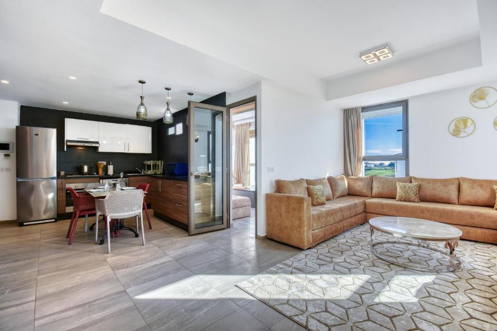 Featuring a private entrance, this spacious apartment also is comprised of 1 bedroom, a seating area and 2 bathrooms with a walk-in shower and a hairdryer. Meals can be prepared in the well-fitted kitchen, which is fitted with a refrigerator, kitchenware, an oven and a microwave. The air-conditioned apartment offers a flat-screen TV with cable channels, a washing machine, soundproof walls, a tea and coffee maker as well as sea views. The unit provides 1 bed.