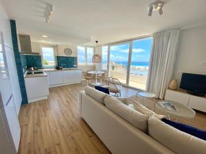 El apartamento con aire acondicionado de Tarifa Cozy House - Penthouse Humero 270º consta de 2 dormitorios, sala de estar, cocina equipada con nevera y cafetera, y 1 baño con ducha y secador de pelo. El apartamento Tarifa Cozy House - Penthouse Humero 270º dispone de toallas y ropa de cama.