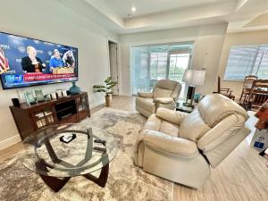 This villa's special features are the private pool and the hot tub. Featuring a private entrance, this spacious villa also consists of 4 bedrooms, a seating area and 2 bathrooms with a bath and a shower. Guests will find a stovetop, a refrigerator, a dishwasher and an oven in the well-equipped kitchen. The villa also offers a barbecue. The air-conditioned villa provides a flat-screen TV with cable channels, a washing machine, a tea and coffee maker, tumble dryer as well as pool views. The unit offers 4 beds.