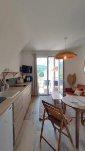 Tento apartmán s klimatizací má 1 ložnici, kabelovou TV s plochou obrazovkou, jídelní část a kuchyň s lednicí a myčkou nádobí. Apartmán Terracotta - T2 avec Terrasse proche de Cassis poskytuje hostům ručníky a ložní prádlo.