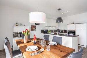 В этих апартаментах в Terrassenwohnung Kranich - Oase am Haff есть 3 спальни, гостиная, хорошо оборудованная кухня с холодильником и посудомоечной машиной, а также 2 ванные комнаты с душем. Установлен телевизор с плоским экраном. С террасы Terrassenwohnung Kranich - Oase am Haff открывается вид на море. В объект размещения постельное белье и полотенца предоставляются за дополнительную плату.