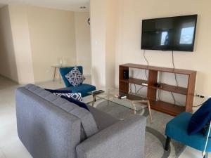 Apartmán ubytování poskytuje 2 ložnice, 2 koupelny, ložní prádlo, ručníky, kabelovou TV s plochou obrazovkou, jídelní kout a plně vybavenou kuchyň. Z balkonu ubytování TG Departamento Completo en zona céntrica se nabízí výhled na město. Koupelna v ubytování zahrnuje sprchu a toaletní potřeby zdarma.
