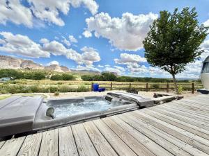 This holiday home offers a hot tub. Meals can be prepared in the well-fitted kitchen, which comes with a stovetop, a refrigerator, kitchenware and an oven. The air-conditioned holiday home provides a TV with cable channels, a private entrance, a tea and coffee maker, a barbecue as well as mountain views. The unit offers 1 bed.
