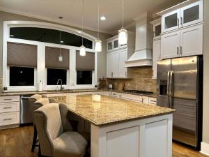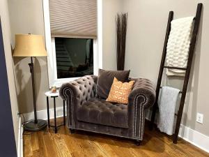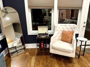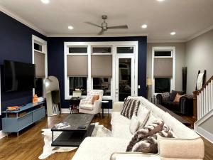 Cette maison de vacances avec climatisation se compose de 3 chambres, d'un salon, d'une cuisine entièrement équipée avec un réfrigérateur et une machine à café, ainsi que de 4 salles de bains avec une douche et un bain à remous. Le linge de lit et les serviettes sont fournis par The AmpHouse I Private Rooftop & Hot Tub I 4 mi to Broadway.
