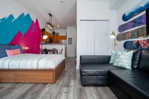 The hot tub and fireplace are the special features of this apartment. This apartment includes 1 living room, 1 separate bedroom and 1 bathroom with a bath and free toiletries. In the fully equipped kitchen, guests will find a stovetop, a refrigerator, a dishwasher and kitchenware. The air-conditioned apartment offers a flat-screen TV with streaming services, a washing machine, a coffee machine, a seating area as well as mountain views. The unit has 2 beds.
