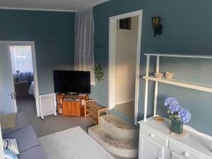 The spacious holiday home with a balcony and sea views features 3 bedrooms, 2 living rooms, a flat-screen TV, an equipped kitchen with an oven and a microwave, and 1 bathroom with a shower. Towels and bed linen are provided in the holiday home at The Bach at Perehipe -Short walk to beach. The Bach at Perehipe -Short walk to beach also features a seating area and a fireplace.