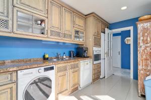 Apartmán má 2 ložnice, 1 koupelnu, ložní prádlo, ručníky, TV, kuchyň s kompletním vybavením a terasu s výhledem na moře. Koupelna v The Blue View disponuje sprchou, pračkou, fénem a toaletními potřebami zdarma.