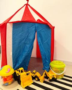 This spacious apartment consists of 1 living room, 3 separate bedrooms and 2 bathrooms with a bath and a bidet. Guests can make meals in the kitchen that is equipped with a refrigerator, kitchenware, a microwave and a toaster. This air-conditioned apartment is comprised of a dining area, a flat-screen TV with streaming services a washing machine and a balcony. The unit provides 4 beds.