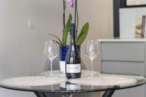 Zimmer: 1The apartment has 2 bedrooms, 1 bathroom with a shower and a kitchen. The well-equipped kitchen features a stovetop, a refrigerator, a dishwasher and kitchenware. This apartment features a tea and coffee maker, a TV and mountain views. The unit has 2 beds.