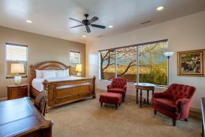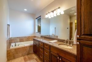Tento klimatizovaný prázdninový dům The Courtyard at Sand Hollow Resort má 3 ložnice, kabelovou TV, jídelní kout a kuchyň s lednicí a myčkou.