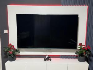 Klimatyzowany apartament The Crib posiada sypialnię i telewizor.