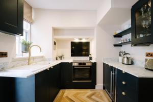 The holiday home with a terrace and garden views has 1 bedroom, a living room, a flat-screen TV, an equipped kitchen with a dishwasher and an oven, and 1 bathroom with a hot tub. A private entrance leads into the holiday home at the property, where guests can enjoy wine or champagne and chocolates or cookies. The Den - The White House Windermere includes an outdoor dining area.