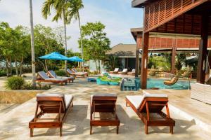 Guests will find a stovetop, a refrigerator, a dishwasher and kitchenware in the well-equipped kitchen. The villa also has a barbecue. The spacious villa offers air conditioning, a washing machine, a terrace with sea views as well as a private bathroom featuring a bath.