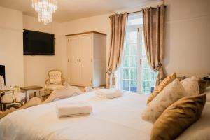 This king room has a balcony and views of the River Stour. It features an en-suite bathroom with a bath tub, shower over bath and his and hers sinks. The room also has high Georgian ceilings and sash windows.