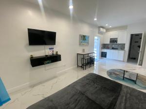 The spa bath is a top feature of this apartment. Boasting a private entrance, this air-conditioned apartment comes with a kitchenette, 1 bedroom and 1 bathroom with a shower and a hairdryer. The well-fitted kitchenette has a refrigerator, kitchenware and a microwave. Featuring outdoor furniture, this apartment also features a wardrobe, a sofa and a flat-screen TV with streaming services. The unit has 1 bed.