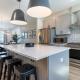 Questa casa vacanze con aria condizionata comprende 4 camere da letto, un soggiorno, una cucina con utensili, frigorifero e lavastoviglie, e 5 bagni.