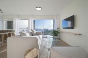 Diese Ferienwohnung mit einem Balkon und Meerblick bietet 2 Schlafzimmer, ein Wohnzimmer, einen Flachbild-TV, eine gut ausgestattete Küche mit einem Kühlschrank und einem Geschirrspüler sowie 2 Badezimmer mit einer Dusche. In dieser Ferienwohnung werden Handtücher und Bettwäsche zur Verfügung gestellt.