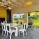 Dieses Ferienhaus mit Gartenblick hat Parkettböden und 4 Schlafzimmer sowie 2 Badezimmer mit einer Dusche, einer Badewanne und einem Haartrockner. Es gibt einen Essbereich und eine Küche komplett ausgestattet mit einem Geschirrspüler.