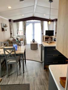 Pokoje: 1This chalet features a fireplace. The chalet has 2 bedrooms, 2 bathrooms, a kitchen and a dining area. The well-equipped kitchen features a stovetop, a refrigerator, kitchenware and an oven. The chalet features a flat-screen TV with streaming services, a tea and coffee maker, a wardrobe, a barbecue as well as garden views. V této ubytovací jednotce se nachází 3 postele.