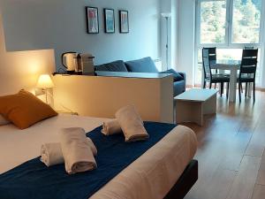 Este estudio dispone de baño privado con ducha, secador de pelo y artículos de aseo gratuitos. La zona de cocina está equipada con fogones, nevera, utensilios de cocina y microondas. El estudio cuenta con lavadora, paredes insonorizadas, tetera/cafetera, TV de pantalla plana con canales por cable y vistas a la montaña. El alojamiento incluye 2 camas.