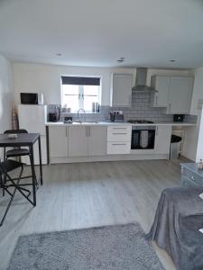 Apartmán The Lodge, 9 Dene House má 1 ložnici, TV s plochou obrazovkou a kuchyňský kout.