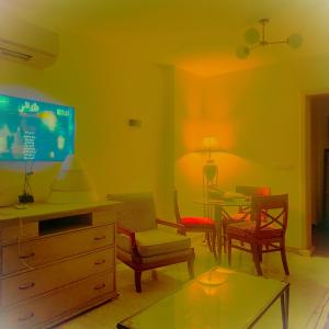 Klimatyzowany apartament z 2 sypialniami posiada salon. W obiekcie The most luxurious, most wonderful location in Egypt, New Cairo, Madinaty Resort, air conditioning, free internet الافخم أروع موقع مصر القاهرة الجديدة منتجع مدينتي مكيفة انترنت مجاني znajduje się telewizor z płaskim ekranem. Na miejscu znajduje się kuchnia.