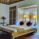Each villa is fully air-conditioned and includes a well-equipped kitchen with a refrigerator and kitchenware. All master bedrooms are fitted with smart TVs and Netflix access for your entertainment. Every bedroom features an en-suite bathroom with either a bath or shower, along complimentary toiletries. Guests can enjoy serene views of the garden and pool directly from their rooms.