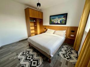 The apartment's kitchen is available for cooking and storing food. The spacious apartment features air conditioning, a washing machine and a balcony. The unit has 4 beds.