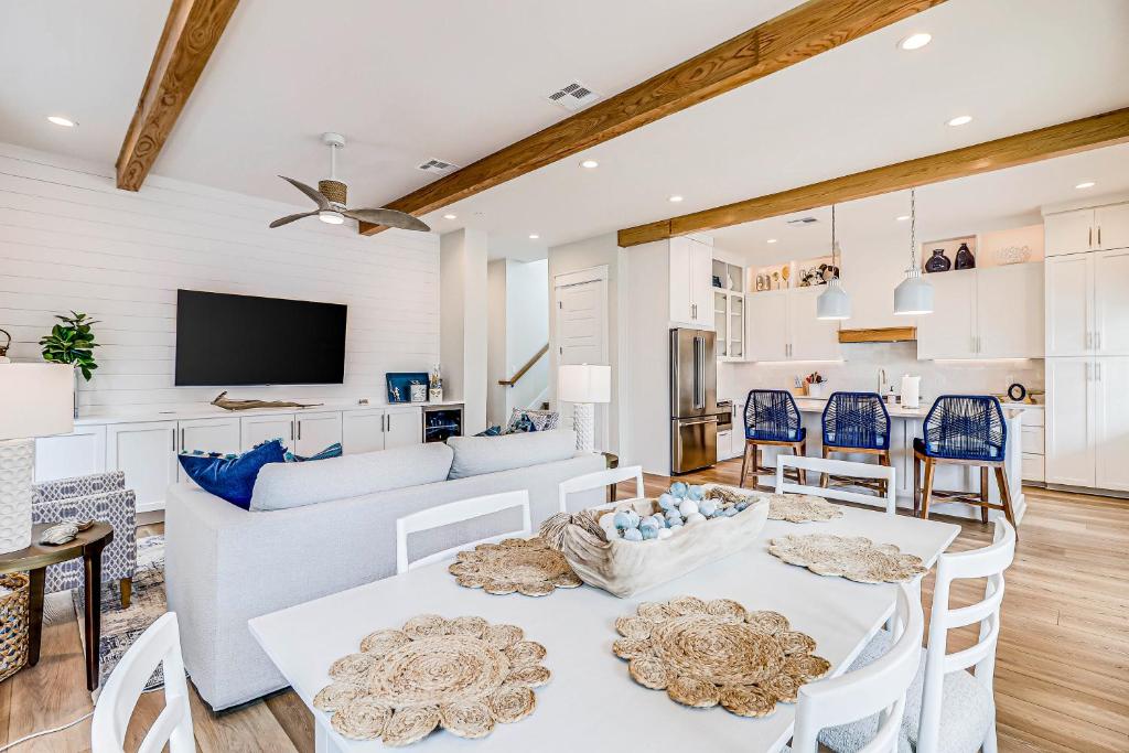 This spacious holiday home features 2 living rooms, 2 separate bedrooms and 3 bathrooms with a hairdryer and free toiletries. The fully equipped kitchen has a stovetop, a refrigerator, a dishwasher and kitchenware. The air-conditioned holiday home features a TV with streaming services, a washing machine, a private entrance, a tea and coffee maker as well as sea views. The unit has 7 beds.