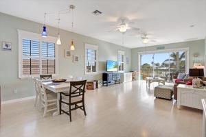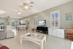 Cette maison de vacances climatisée du The Perfect Beach Getaway, 2 Bedroom, 2-Bath Home, Sleeps 7 comporte 3 chambres, une télévision par câble, un coin repas, un salon et une cuisine avec réfrigérateur.