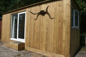 The apartment features 1 bedroom, a flat-screen TV, a fully equipped kitchenette with an oven and a microwave, a washing machine, and 1 bathroom with an a bath or shower. Towels and bed linen are featured at The Pines Cabin - Farm Park Stay.