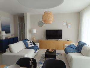 Featuring a private entrance, this air-conditioned apartment comprises 1 living room, 2 separate bedrooms and 1 bathroom with a shower and a hairdryer. In the kitchen, guests will find a stovetop, a refrigerator, a dishwasher and kitchenware. The spacious apartment provides a washing machine, soundproof walls, a tea and coffee maker as well as a terrace with sea views. The unit offers 3 beds.