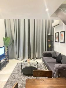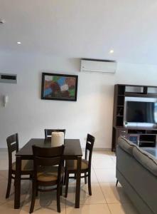 El apartamento con aire acondicionado en The Serene home, Embassy Gardens incluye un dormitorio, zona de comedor, TV de pantalla plana y cocina con horno y nevera.