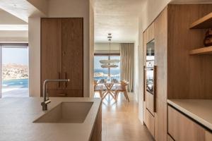 Esta villa con aire acondicionado consta de 5 dormitorios, una sala de estar, una cocina totalmente equipada con nevera y cafetera, y 5 baños con ducha y bañera de hidromasaje. La villa The Skyvilla Mykonos - A Landmark Property with Breathtaking Views of the Psarou bay facilita toallas y ropa de cama.